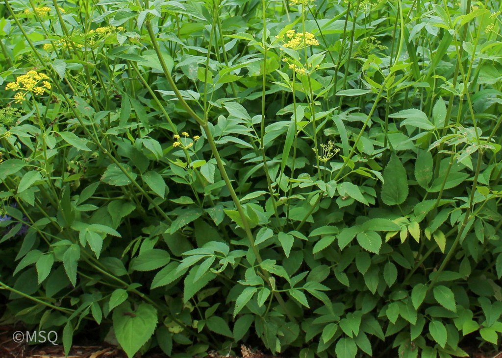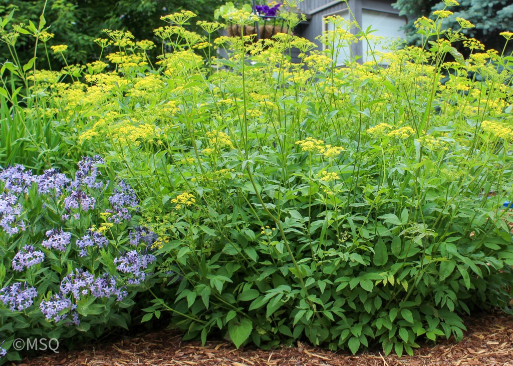 One caution with Zizia aurea, under ideal conditions, it reseeds heavily and spreads by rhizome. This lavish reproduction can be a challenge in a home garden and yard. The best solution is to cut off the spent blooms as quickly as possible. Zizia is very happy in my garden. If I don’t remove the seed heads, the seedlings sprout and they have six-inch, thick fibrous roots. These must be dug out, not pulled. In addition, watch for seedling growing in other plants. Remove them quickly. Otherwise, Zizia will establish itself in the perennial’s root system. Zizia usually only needs this post-bloom pruning.
