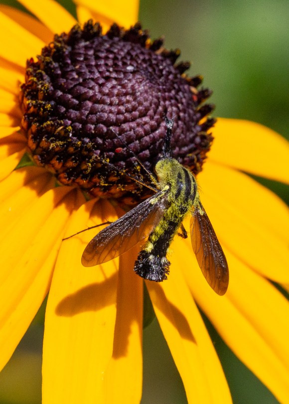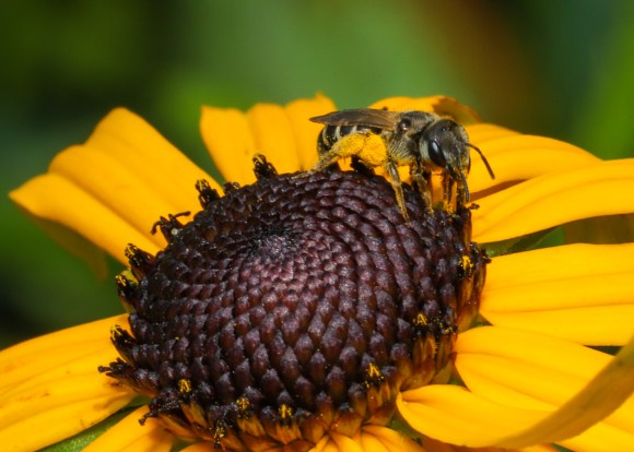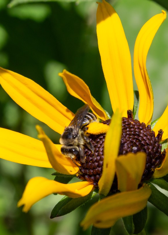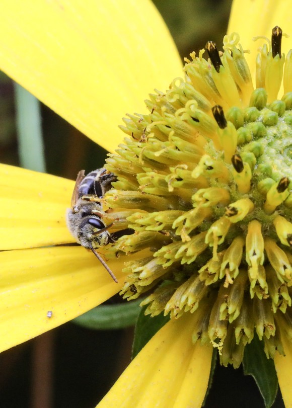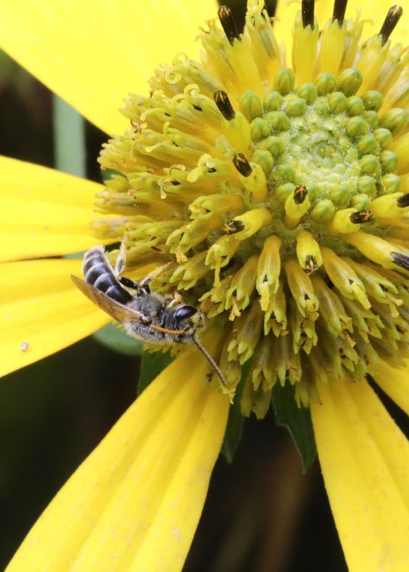 The Denticulate Long-Horned Bee is an oligolectic bee or a bee with just a few pollen sources. The females have remarkably long antennae or “horns”. Males’ antennae resemble other bees.1,2