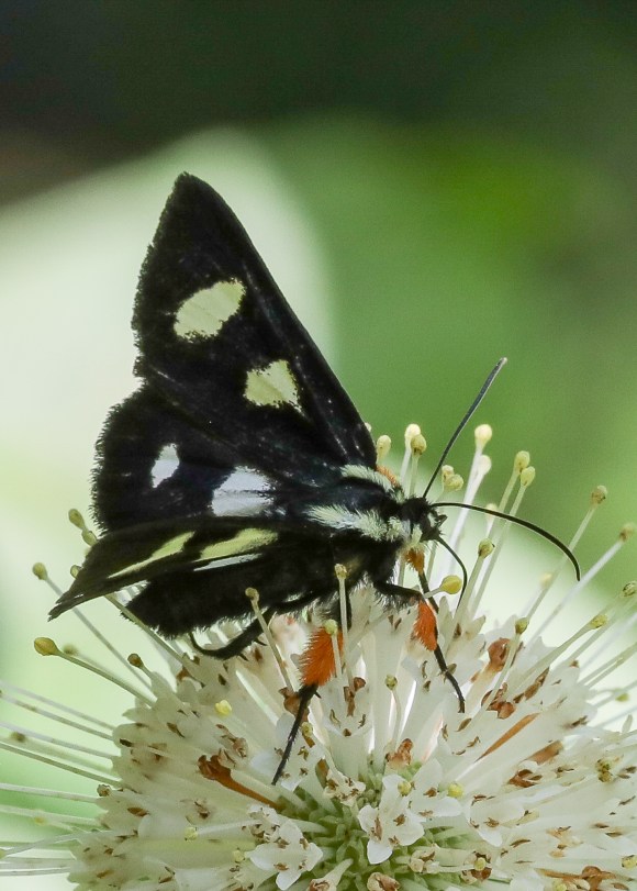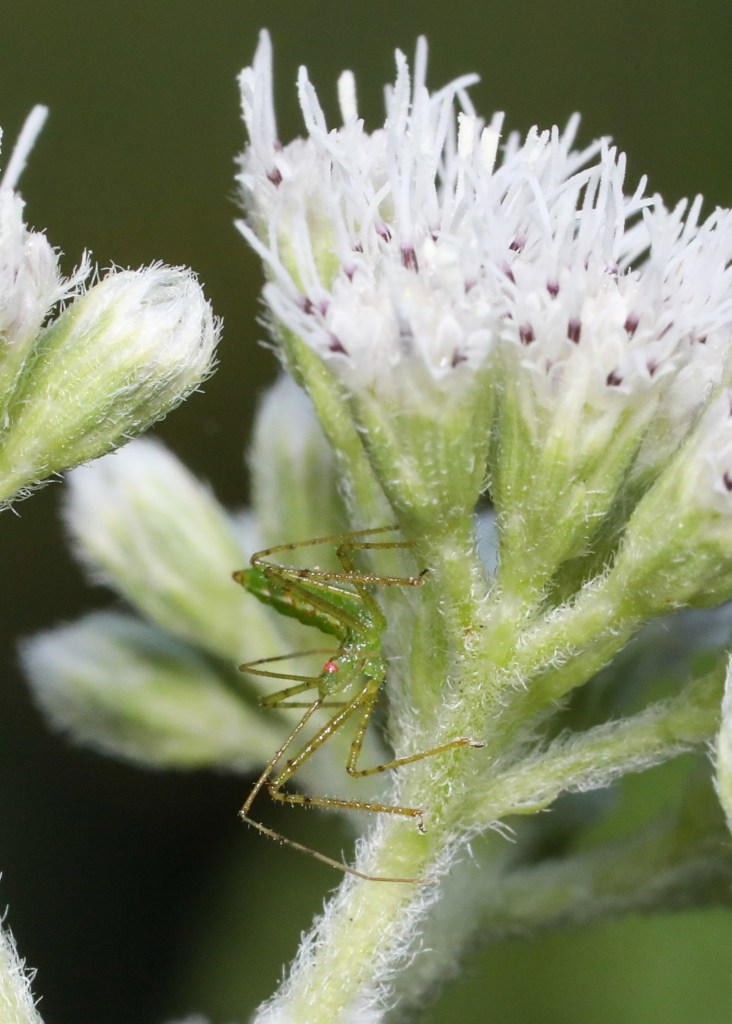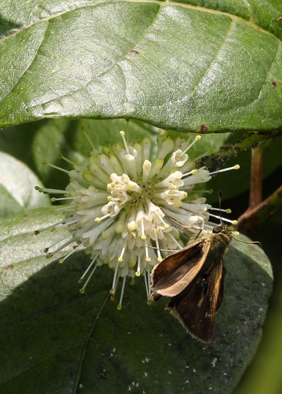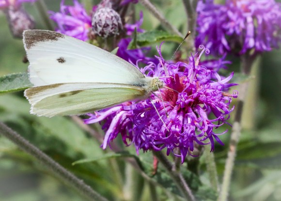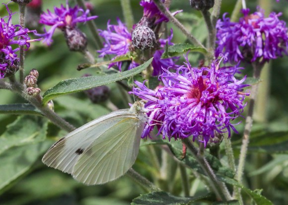 Late season pollinators and beneficial insects all harvest resources from Vernonia missurica. Butterflies, moths and skippers gather nectar from the blooms.