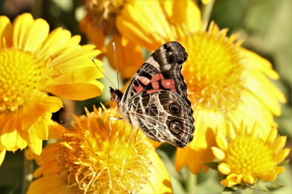 The American Painted Lady Butterfly looks like the Painted Lady butterfly (Vanessa cardui). To identify them, look at the eyespots on the underside of the hindwing. The American Painted Lady Butterfly has 2 large eyespots. The Painted Lady Butterfly has 4 smaller eyespots. 3,4
