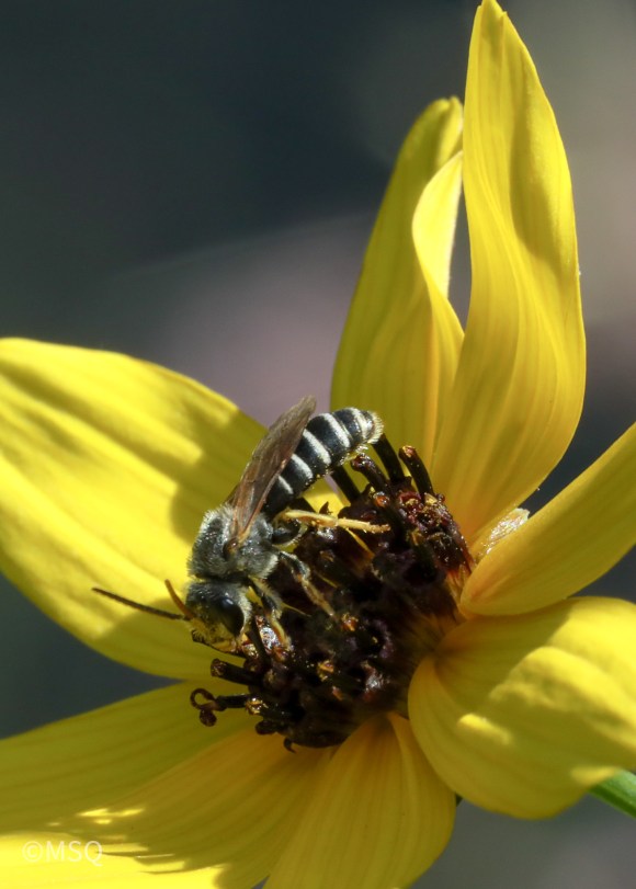 The Denticulate Long-Horned Bee is an oligolectic bee or a bee with just a few pollen sources. The females have remarkably long antennae or “horns”. Males’ antennae resemble other bees.1,2